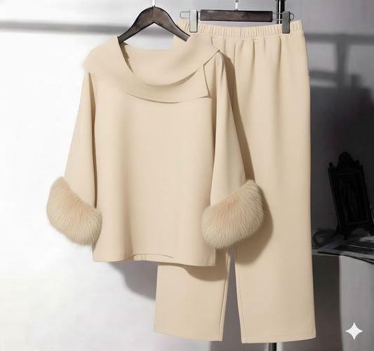 Cowl Fur Set | Cream Biege