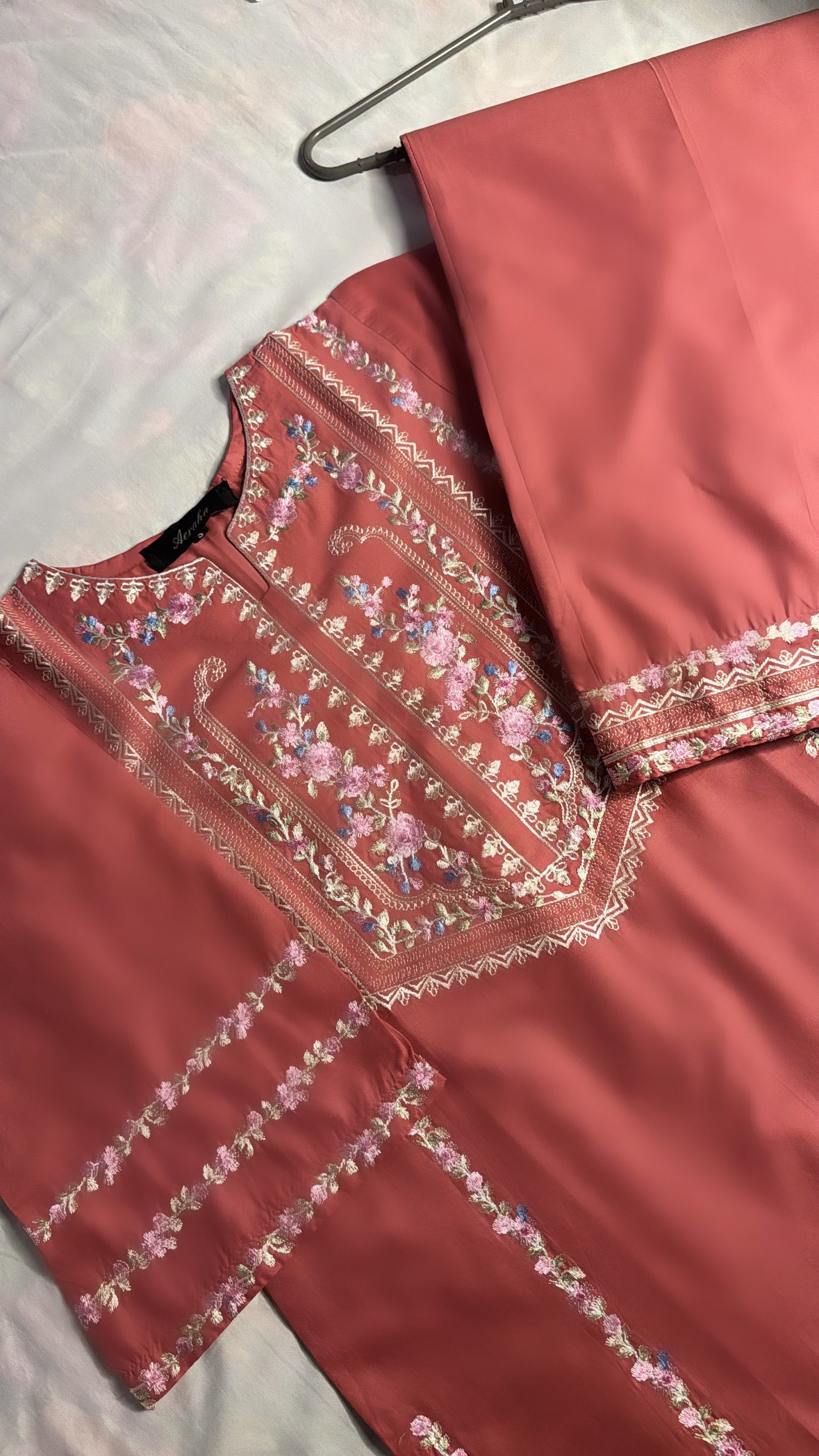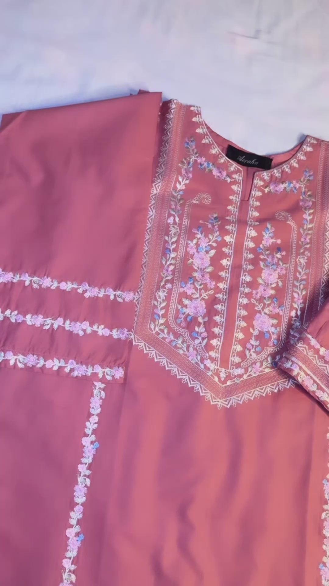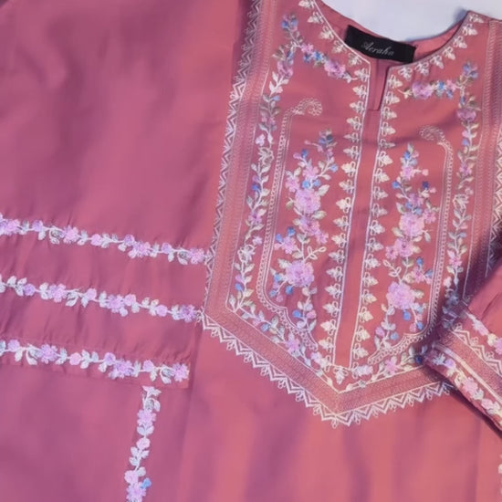 2 piece lawn cotton loose fit set fully embroidered neck line and sleeves including embroidered border culottes.