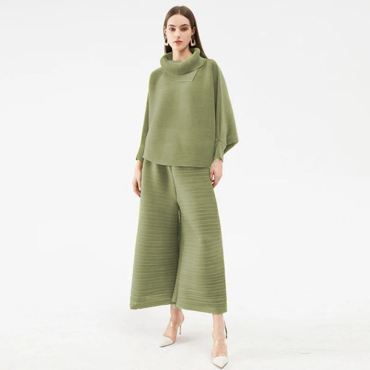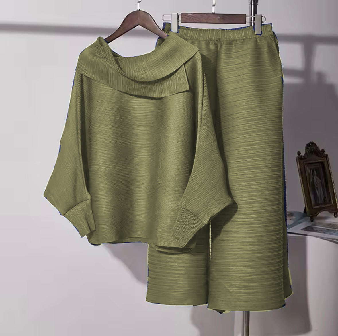 Elevate your wardrobe with the famous set, a modern classic crafted in lightweight, textured plissé fabric that flows effortlessly with every step. The top features a graceful cowl neckline that drapes elegantly over the body, paired with a relaxed silhouette for all-day ease.
